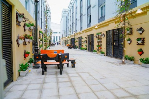 Mặt tiền phía sau nhà phố được trang trí bắt mắt. |