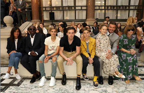 David Beckham chia sẻ ảnh 4 bố con đi cổ vũ mẹ Victoria tại Tuần lễ thời trang London trên Instagram. |