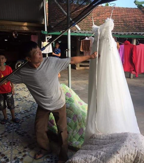"Đẩy" được con gái đi lấy chồng, ông bố hí hửng đem váy cưới của con đi khoe cả làng