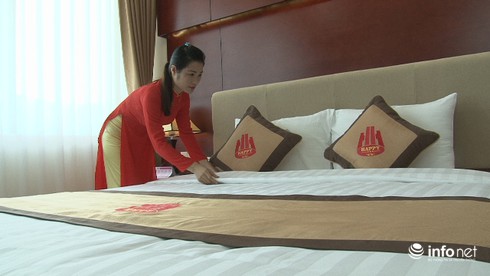 Một học viên đang được đào tạo về phục vụ lễ tân trong các khách sạn. |