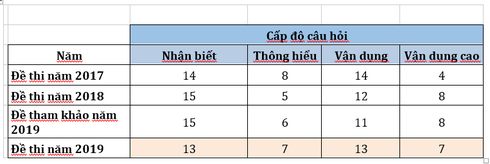 Có thể quan sát bảng so sánh ma trận đề thi qua các năm dưới đây: