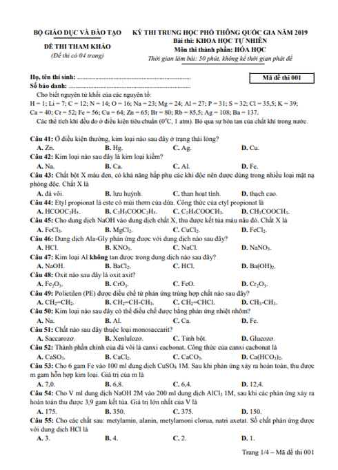 Ngày 6/12/2018, Bộ Giáo dục và Đào tạo đã công bố bộ Đề thi tham khảo THPT quốc gia năm 2019. Infonet xin đăng tải đề thi môn Hóa