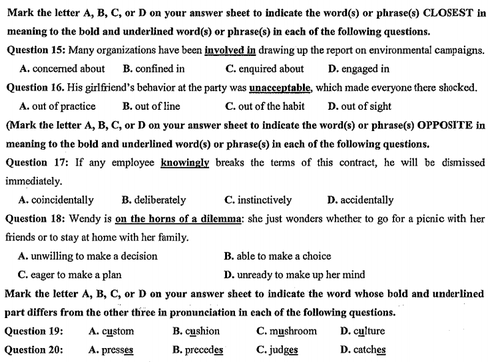 Chỉ còn chưa đầy 1 tháng nữa là kỳ thi THPT quốc gia 2018 chính thức khởi động, thí sinh có thể tham khảo Đề thi thử THPT quốc gia 2018 môn Tiếng Anh trường THPT Chuyên Trần Phú (Hải Phòng) lần 2 để luyện cho mình kỹ năng cơ bản khi làm bài thi.