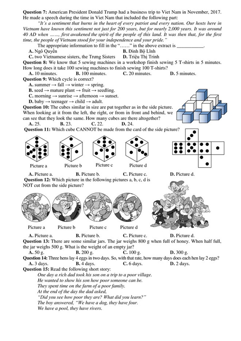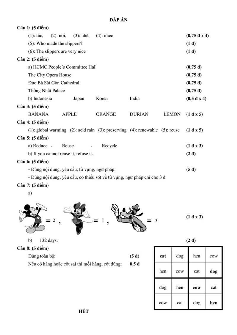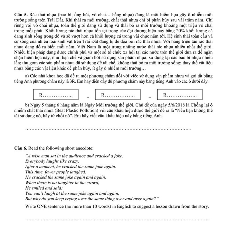 Đề và đáp án khảo sát năng lực lớp 6 Trường THPT chuyên Trần Đại Nghĩa năm 2018