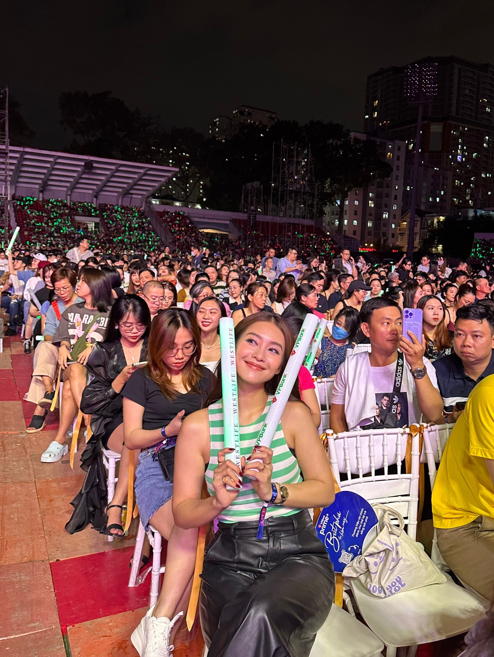 Từ 17h, dòng người xếp hàng check-in đã kéo dài tại cả 3 cổng soát vé để được sống lại phút giây thanh xuân tươi đẹp cùng những bản tình ca bất hủ. Khi ánh đèn phụt tắt, toàn bộ SVĐ sáng rực sắc xanh thịnh vượng của hàng nghìn thanh led phát sáng từ VPBank, nhà tài trợ lớn nhất của hai đêm diễn đưa Westlife đến Việt Nam lần này.
