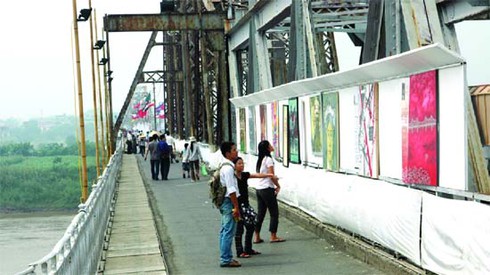 Một cuộc triễn lãm ảnh trên cầu Long Biên. Ảnh: Nguyễn Long