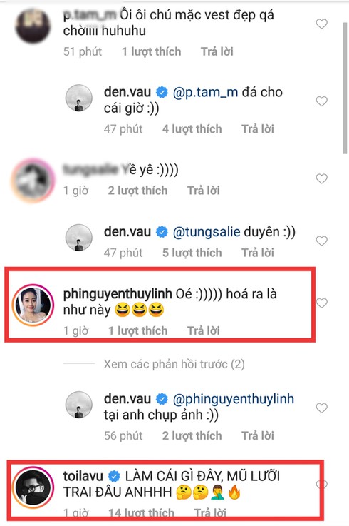 Không chỉ các fan mà ngay cả bạn bè đồng nghiệp của Đen Vâu cũng "sốc" với sự biến hóa ngoạn mục này. MC Phí Thùy Linh thể hiện rõ sự thích thú vì cuối cùng cũng thấy được Đen diện vest hàng hiệu, "Hóa ra là như này", cô nàng bình luận. |