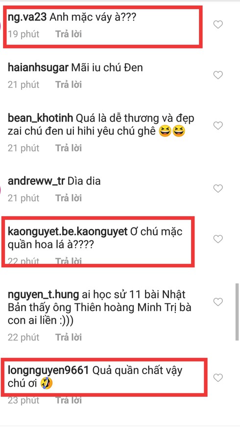 Cụ thể, chỉ sau vài tiếng đăng tải, đã có ngay dàn “thám tử” vào “bóc mẽ” chàng rapper Đen Vâu khi phần trên thì mặc nguyên set Gucci đắt đỏ nhưng phần dưới lại đang mặc chiếc quần đùi hoa màu xanh như "mượn của mẹ".