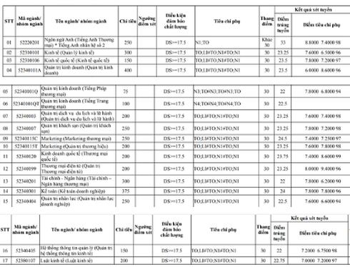 Sau đây là điểm chuẩn của ĐH Thương Mại 2017: