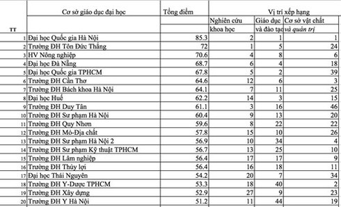 Bảng xếp hạng các trường ĐH Việt Nam lần đầu tiên được công bố |