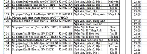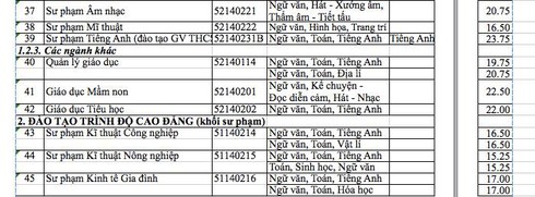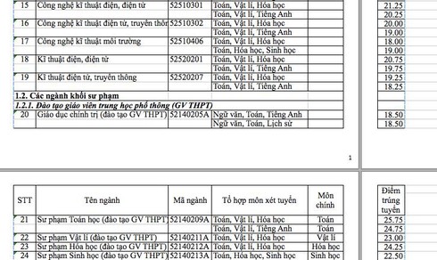 Điểm chuẩn hệ ĐH giao động từ 16,5 – 25,75 điểm. Ngành có điểm chuẩn cao nhất là Sư phạm Toán học.