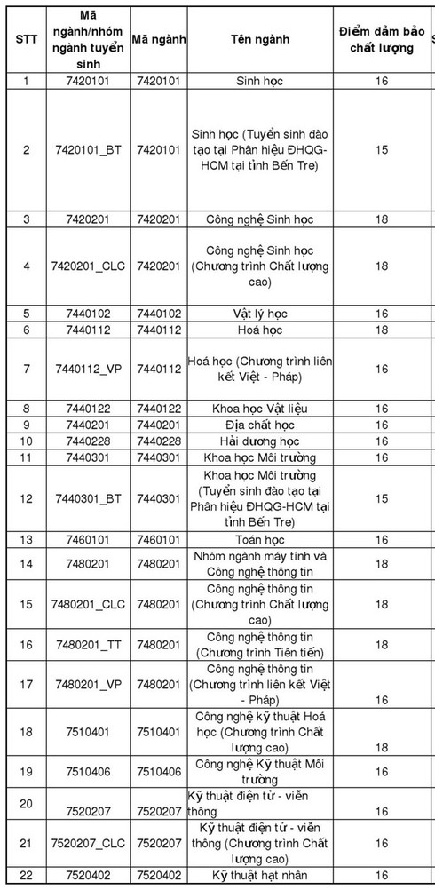 Mức điểm đảm bảo chất lượng dự kiến của Đại học Khoa học Tự nhiên - Đại học Quốc gia TPHCM là 15-18 điểm tùy từng ngành.