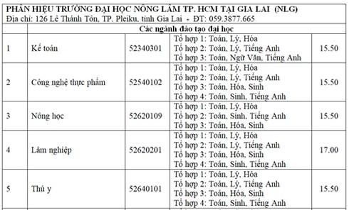 Tổng chỉ tiêu của Đại học Nông lâm TP HCM là 5.200, trong đó cơ sở chính tại TP HCM có 4.500 chỉ tiêu, còn lại ở hai phân hiệu ở Gia Lai và Ninh Thuận. Một số ngành có số lượng chỉ tiêu lớn như Quản lý đất đai 320, Công nghệ thực phẩm 250, Nuôi trồng thủy sản 180...
