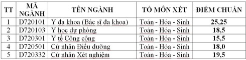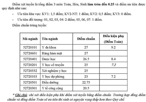 Các ngành Y đa khoa, Răng hàm mặt có điểm chuẩn cao nhất. Trường có xét tiêu chí phụ.