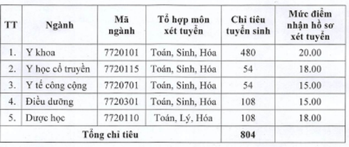 Theo đó, điểm xét tuyển vào ĐH Y Dược Thái Bình 2018 như sau: