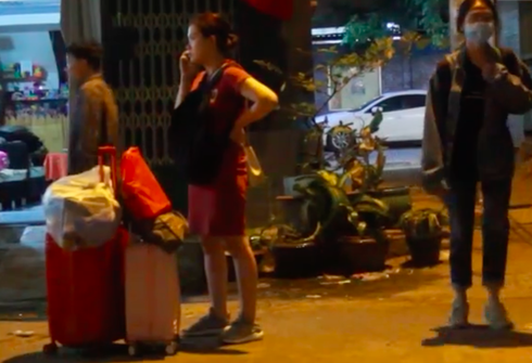 Cư dân tất tả dọn đồ ra khỏi căn hộ trong đêm 23/1. (Ảnh: Hải Long) |
