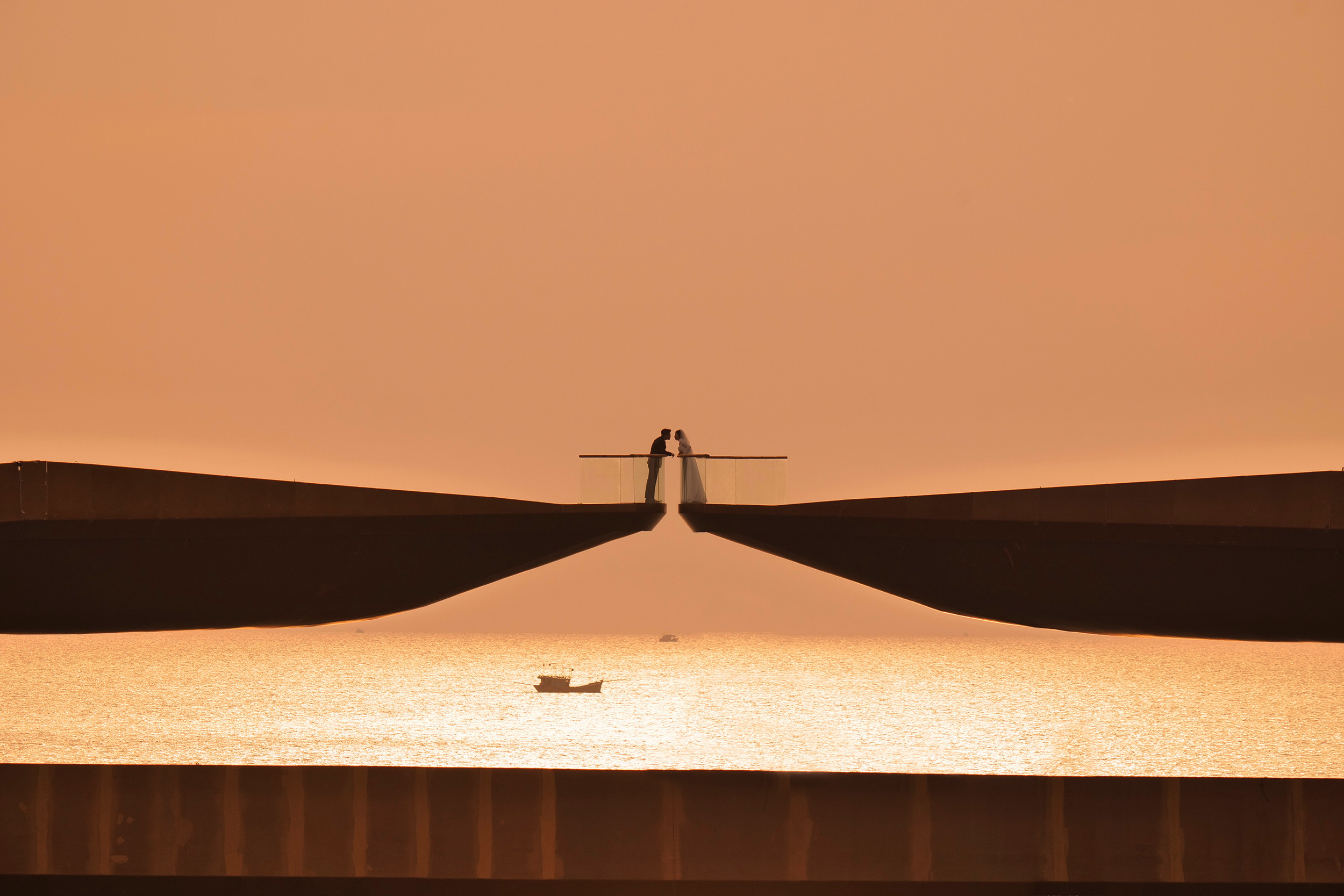 Cây cầu được tạo nên bởi 2 nhánh độc lập, dài 400m, vươn mình giữa biển, hợp làm một thể thống nhất nhưng không chạm. Hai đầu cầu không nối liền nhau mà cách một khoảng rộng 30cm. Nhà thiết kế ẩn dụ cho cảm giác rung động của tình yêu. Khoảng cách và rung động đó sẽ được lấp đầy bởi ánh hoàng hôn tuyệt diệu lúc chiều tà cùng nụ hôn ngọt ngào của các cặp đôi.