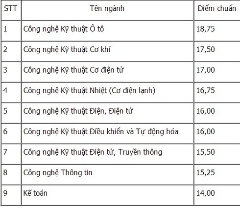 Điểm chuẩn cao nhất CĐ Kỹ thuật Cao Thắng là 18,75 điểm