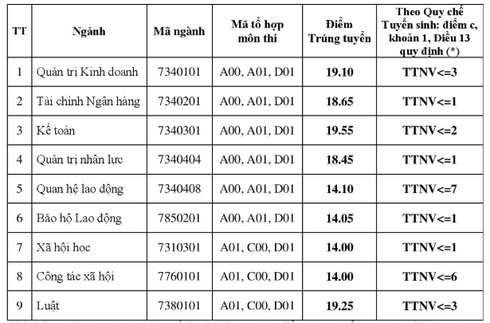 Sau đây là chi tiết điểm chuẩn Đại học Công đoàn 2019: