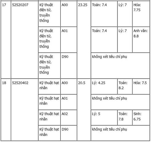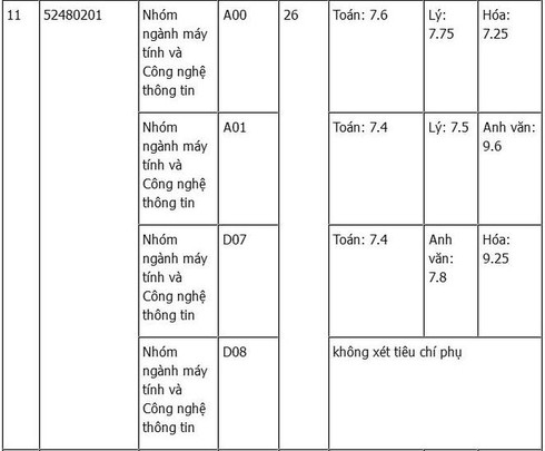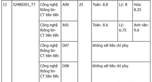 Điểm tối thiểu của các môn thi theo thứ tự ưu tiên đối với thí sinh có điểm tổng (bao gồm điểm ưu tiên khu vực và đối tượng) bằng điểm chuẩn.