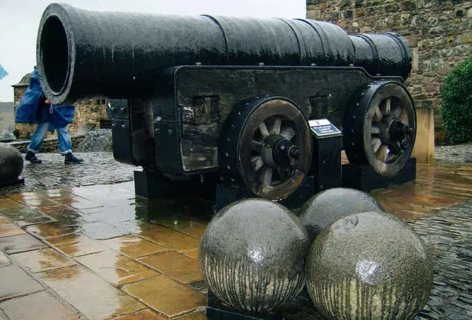 Pháo Mons Meg của Scotland có cỡ nòng phi thường là 520mm, được sử dụng từ năm 1449 đến năm 1680. Mục đích chính là phá vỡ các bức tường pháo đài thành cát bụi với sự trợ giúp của các viên đạn bằng đá, kim loại và đá-kim loại. Mons Meg từng được xem là một trong những loại vũ khí nguy hiểm nhất thế giới. Khẩu pháo này nặng lên tới 6 tấn, mỗi lần có thể bắn ra một viên đạn bằng đá nặng 450kg, tầm bắn là 3,2km.