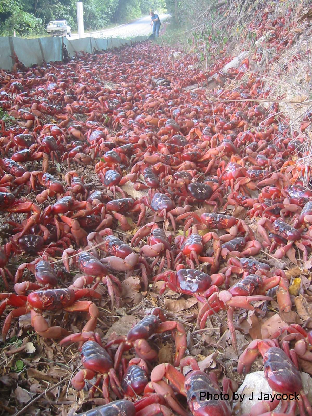 Đảo cua Christmas, Australia. Hòn đảo này là nơi diễn ra cuộc di cư ngoạn mục của những chú cua đỏ. Vào tháng 10 - 12 hàng năm, hơn 50 triệu con cua đỏ sẽ di cư từ các hang tới bờ biển để sinh sản.