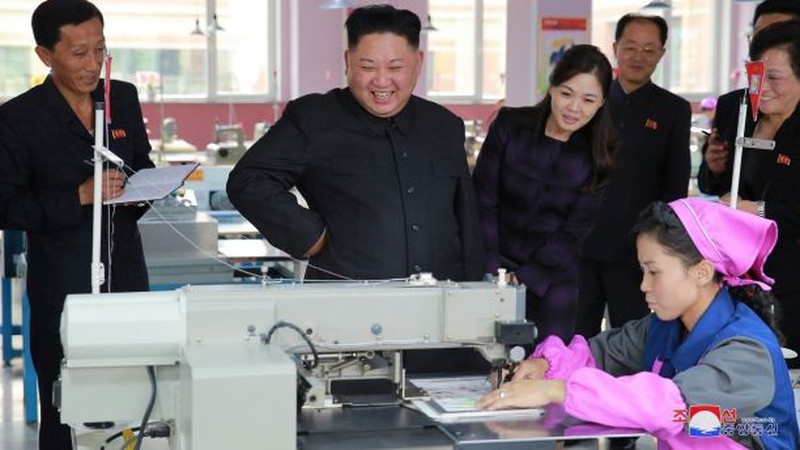 Hình ảnh về chuyến thăm này cho thấy, ông Kim đứng cạnh một công nhân may và nhìn ngắm những đôi giày trẻ em. Đáng nói, những hình ảnh này được công bố kèm theo lời đe dọa từ phía Triều Tiên và gọi Tổng thống Mỹ Donald Trump là “người mất trí ở Nhà Trắng”.