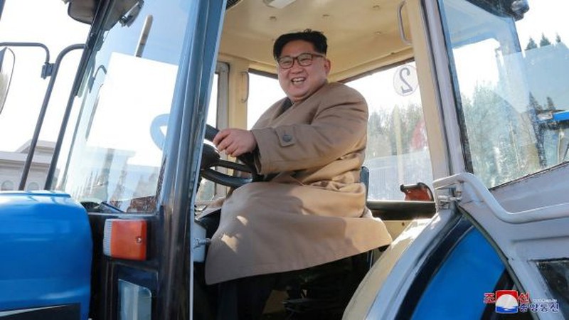 Bức hình chụp chuyến thăm tới nhà máy sản xuất máy kéo Kumsong cho thấy, ông Kim ngồi trên khoang lái của một chiếc máy kéo với khuôn mặt đầy thích thú và cười tươi. Giống như những bức hình lâu nay, một nhóm người đi theo tháp tùng đang ghi chép những lời chỉ đạo của ông Kim cũng xuất hiện.