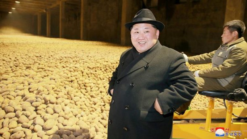 Ngoài ra, ông Kim còn tới thăm một nhà máy sản xuất khoai tây. Hình ảnh mái nhà phủ đầy tuyết cũng xuất hiện trong khung hình nhà lãnh đạo Triều Tiên mặc áo khoác màu đen và đội mũ khi bao quanh là các quan chức đang tập trung ghi chép.