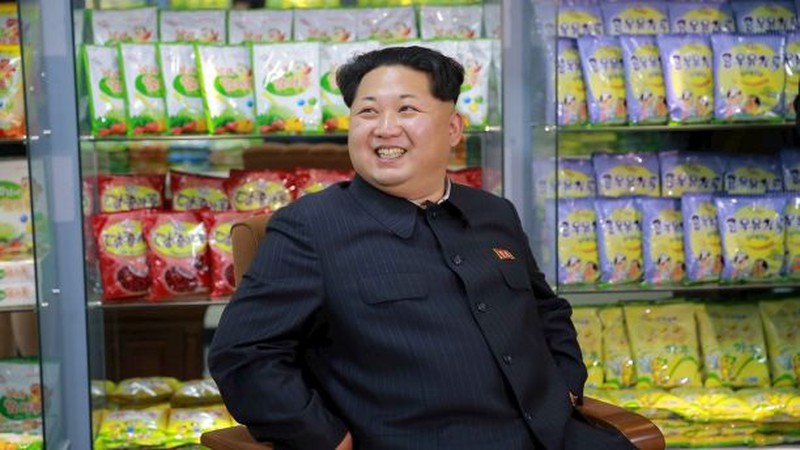 Chuyến thăm năm 2015 lại cho thấy, nhà lãnh đạo Triều Tiên đứng phía trước một chiếc tủ kính trưng bày các thực phẩm đóng gói.