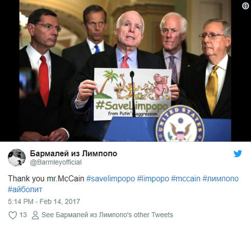 Năm ngoái, Thượng nghị sĩ Mỹ Maxine Waters, người trước đó đã nổi tiếng ở Nga với tuyên bố rằng Moscow đang "tiếp tục tiến vào Hàn Quốc", đã lên tiếng cáo buộc Nga đang can thiệp kết quả bầu cử tại một đất nước hư cấu ở châu Phi qua mạng Internet và đường dây điện thoại dưới sự chỉ đạo của ông Putin và đề nghị chính phủ Mỹ phải giúp đỡ người dân châu Phi với khẩu hiệu “Save Limpopo”.