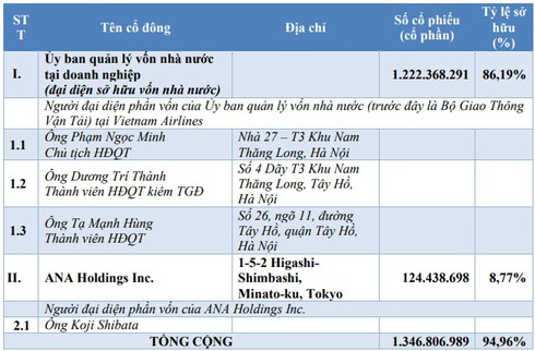Dưới đây là danh sách các thành viên HĐQT của Vietnam Airlines: