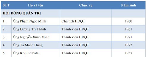 Danh sách HĐQT hiện tại của Vietnam Airlines. |