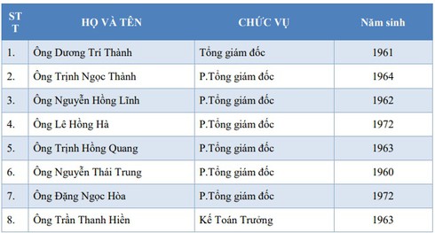 Danh sách ban giám đốc Vietnam Airlines hiện tại. |