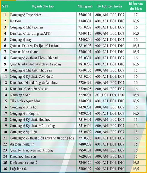 Sau đây là điểm sàn dự kiến của ĐH Công nghiệp Thực phẩm TP.HCM năn 2019: