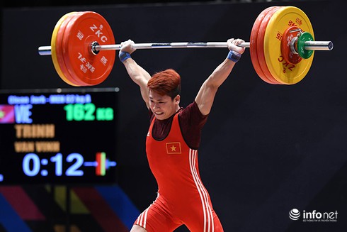Sau chiếc HCV của Thạch Kim Tuấn, Trịnh Văn Vinh cũng góp thêm 1 HCV nữa cho đoàn Thể thao Việt Nam. Trịnh Văn Vinh hoàn thành bài thi của anh với các thông số 135 kg cử giật và 172 kg cử đẩy. Với tổng cử 307kg, Văn Vinh không những đoạt HC vàng mà còn phá kỷ lục SEA Games với một kg nặng hơn kỷ lục cũ - chính là mức tổng cử 306 kg mà Eko Yuli vừa lập nên.
