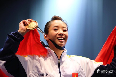 Dấu ấn vàng của xe đạp Việt Nam tại Seagames 29 mang tên Nguyễn Thị Thật. (Ảnh: Hoàng Hùng) |