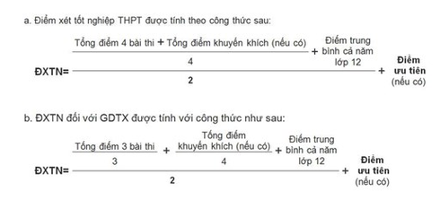 Điểm để xét tốt nghiệp của học sinh bao gồm: điểm các bài thi, điểm ưu tiên, khuyến khích và điểm tổng kết năm lớp 12. Các bài thi sẽ được quy về thang điểm 10 để xét tốt nghiệp.