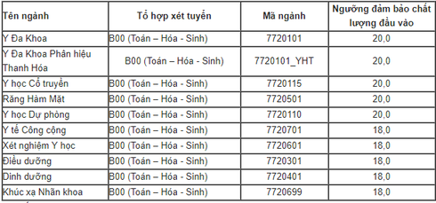 Trường Đại học Y Hà Nội vừa thông báo ngưỡng đảm bảo chất lượng đầu vào (điểm xét tuyển) trong tuyển sinh Đại học hệ chính quy xét tuyển dựa vào kết quả thi THPT Quốc gia năm 2018.