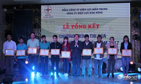 PC Đắk Nông trao thưởng cho các khách hàng tham gia Chương trình “Gia đình tiết kiệm điện”. |