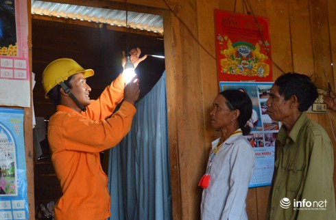 PC Đắk Nông sửa chữa, lắp đặt miễn phí bóng đèn tiết kiệm điện cho các hộ nghèo tại xã Đắk Nia, Gia nghĩa. |