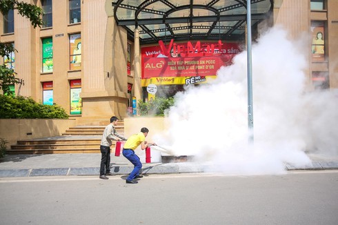Buổi diễn tập diễn ra với nhiều tình huống gay cấn nhằm nâng cao kỹ năng, xử lý kịp thời khi có cháy, phát huy hiệu quả phương châm 4 tại chỗ khi xảy cháy