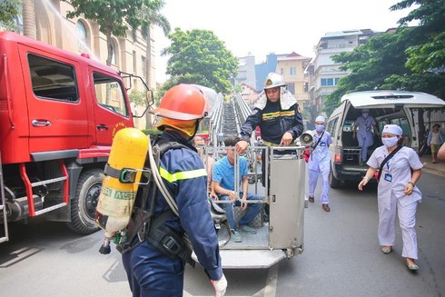 Được biết, trong quá trình thoát nạn khỏi đám cháy, do tâm lý hoảng loạn nên có 2 người bị mắc kẹt tại khu vực siêu thị tầng 1, 2 người bị thương không thể di chuyển được tại tầng 5 cùng một số người đang có mặt tại vị trí ban công tầng 5 nên lực lượng chức năng đã nhanh chóng triển khai biên pháp cứu người bị nạn ở tầng cao.