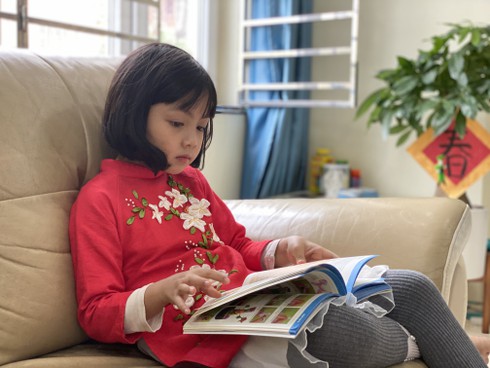 Con rất thích dạy em toán, cờ vua và bày 1 số trò chơi khám phá vũ trụ với em gái của mình. Trong thời gian được nghỉ kéo dài đợt tết năm nay, hai chị em con có nhiều thời gian chơi với nhau hơn, và đặc biệt thích rủ nhau đi xe đạp ở công viên gần nhà’.