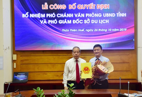 * Thừa Thiên Huế: Trước đó, Chủ tịch UBND tỉnh Phan Ngọc Thọ đã trao quyết định điều động và bổ nhiệm ông Phan Lê Hiến, Phó Giám đốc BQL dự án đầu tư xây dựng dân dụng và công nghiệp tỉnh giữ chức vụ Phó Chánh Văn phòng UBND tỉnh; đồng thời trao quyết định bổ nhiệm ông Trần Hữu Thùy Giang giữ chức vụ Phó Giám đốc Sở Du lịch tỉnh. Các quyết định có hiệu lực kể từ ngày 1/11.