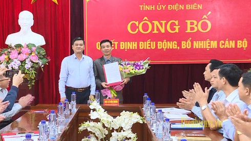 | Phó Bí thư Thường trực Tỉnh ủy, Chủ tịch HĐND tỉnh Lò Văn Muôn trao quyết định điều động cho ông Bùi Văn Luyện. Ảnh: Truyền hình Điện Biên |
