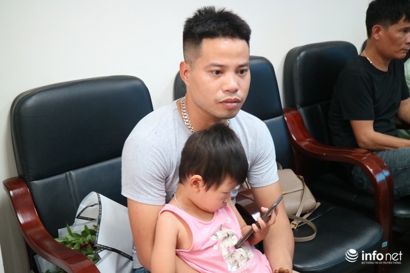 Bố bé Bình An thì có vẻ căng thẳng hơn khi chờ được gặp con |