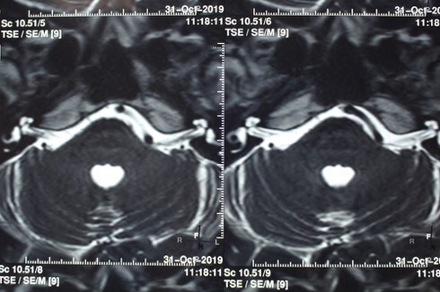 Hình ảnh dây thần sinh số VII bị chèn ép trên phim chụp. |