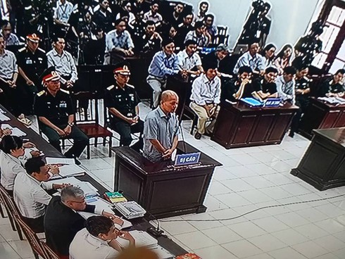 Đinh Ngọc Hệ (Út trọc) tại phiên tòa. |