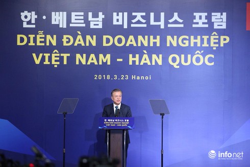 "Hiện nay có hơn 5.000 doanh nghiệp Hàn Quốc đang đầu tư kinh doanh ở Việt Nam. Việc đầu tư của doanh nghiệp Hàn Quốc vào Việt Nam đã tạo ra hàng triệu việc làm, thu nhập cho người lao động Việt Nam. Việt Nam cũng trở thành 1 trong 4 quốc gia đối tác thương mại lớn của Hàn Quốc. Hàn Quốc cũng là nhà đầu tư số 1 vào Việt Nam. Trong năm ngoái, đã có khoảng 27 triệu người dân Việt Nam và Hàn Quốc qua lại giữa hai nước. Trong 25 năm kể từ sau khi thiết lập quan hệ ngoại giao, hai nước đã trở thành đối tác quan trọng không thể thiếu", Tổng thống Hàn Quốc Mun Che In khẳng định.